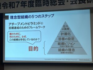 講演の中で印象的だったのは、理念を組織に浸透させるためには